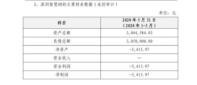 在公告中,长沙怡辰家庭视频监控有限公司科技披露了深圳智慧树的主要财务数据(未经审计),如下图所示。